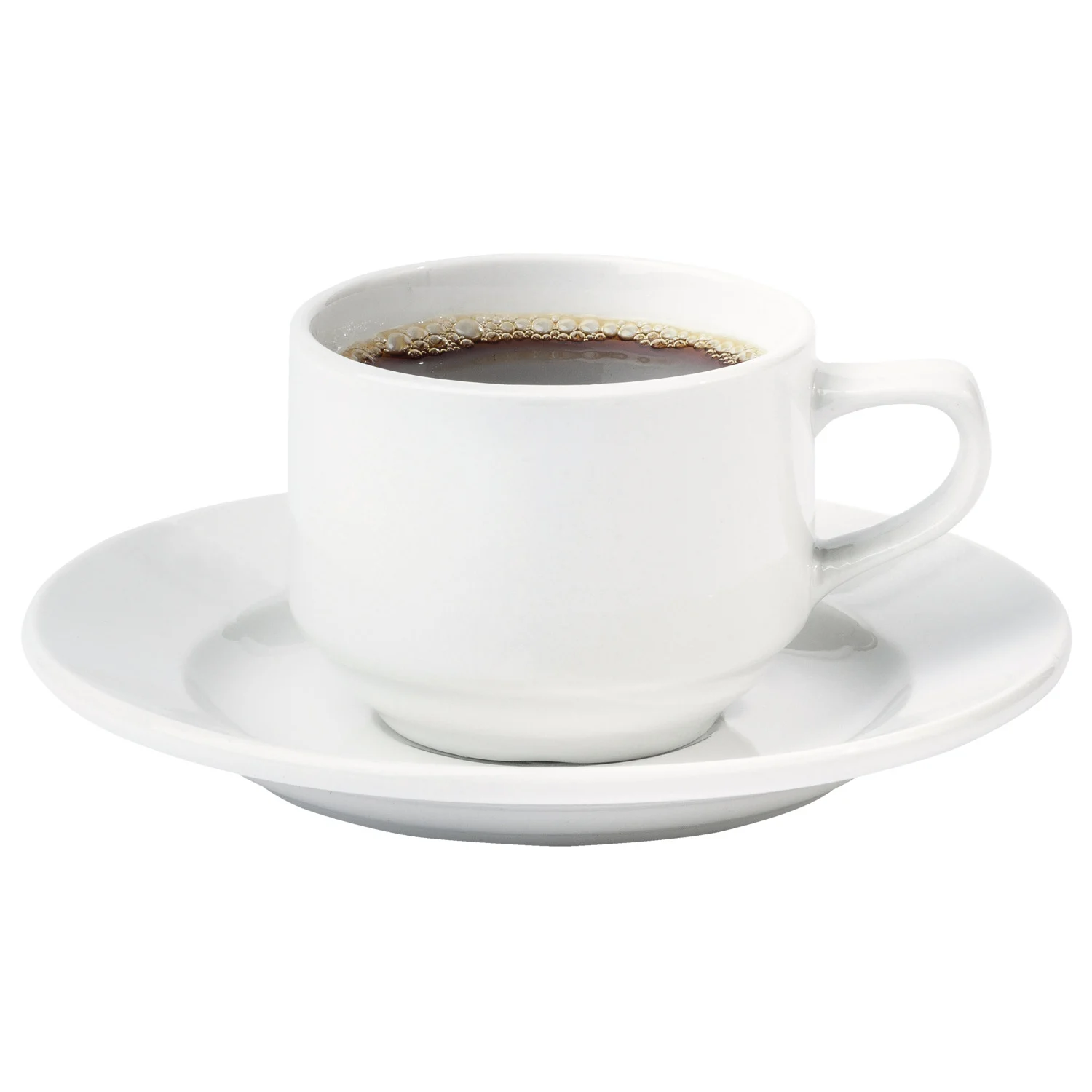 Denne kraftige hvite kaffekoppen gjenspeiler enkelhet og funksjonalitet i et robust restaurantporselen. Perfekt til både kaffe og te, i arrangementer hvor slitestyrke og stil teller.